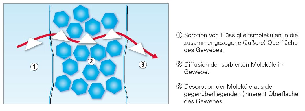 Im Gegensatz zur Penetration durchdringt die Substanz in diesem Fall das Barrierematerial, obwohl die Schutzkleidung völlig intakt ist.